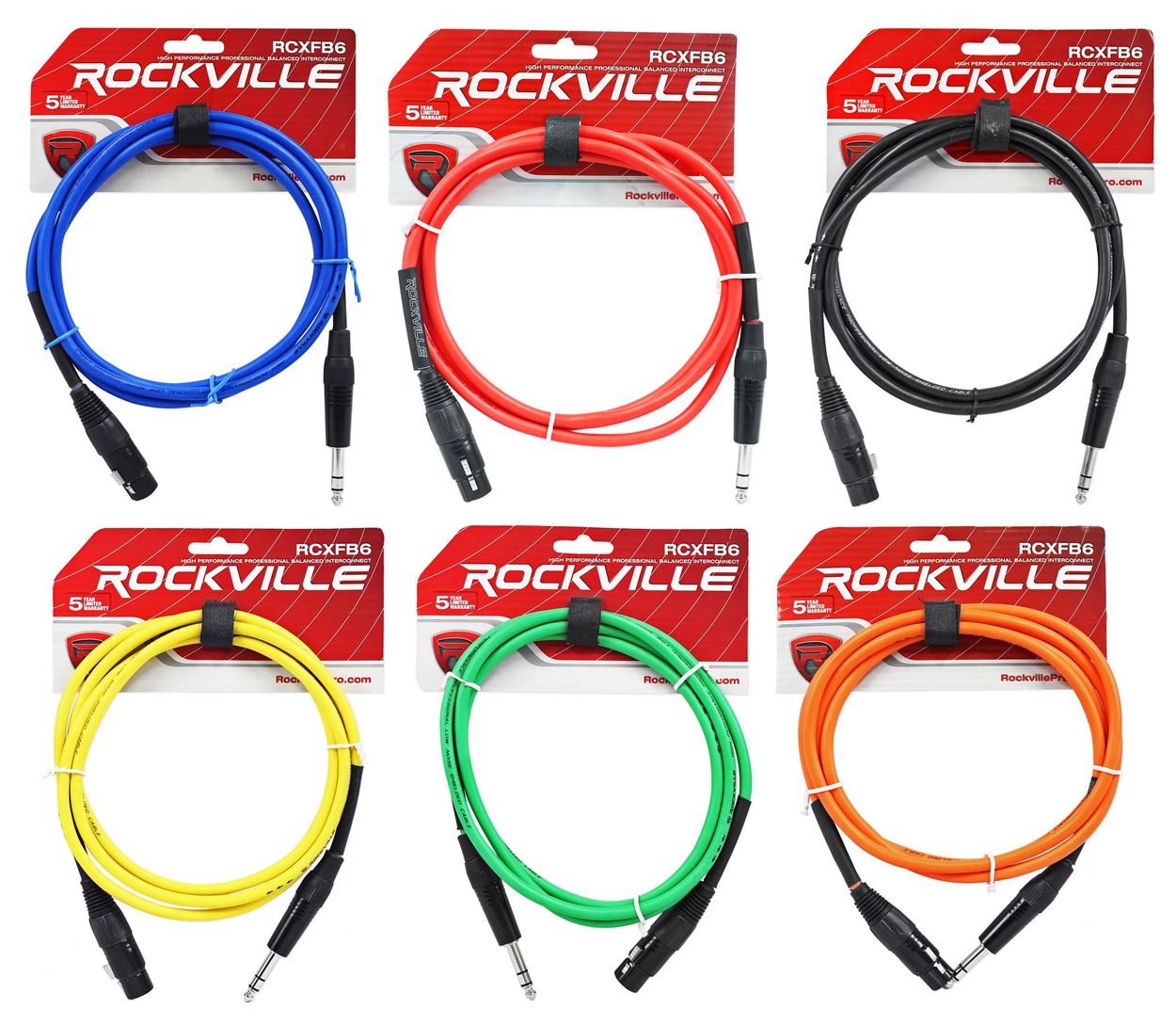 6 Rockville 6' Female Rean XLR to 1/4'' TRS Cables (6 Colors)