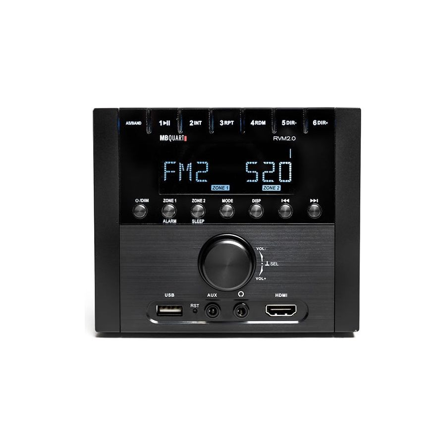 The MB Quart RVM2.0 is a compact, mechless Multimedia Digital Entertainment Controller with a 160 watt internal amplifier. The unit features AM/FM tuner, Bluetooth® streaming audio, USB and AUX audio input options. The RVM2.0 Multimedia Receiver was unveiled to the RV Industry at RVX Show in March 2019.
