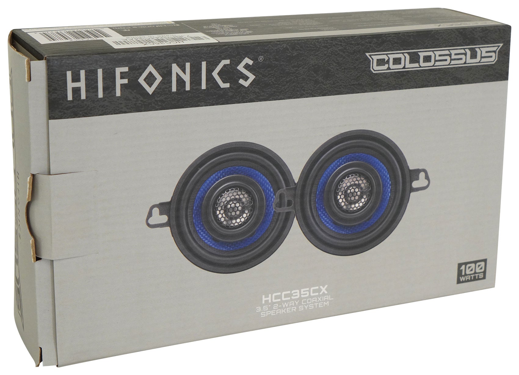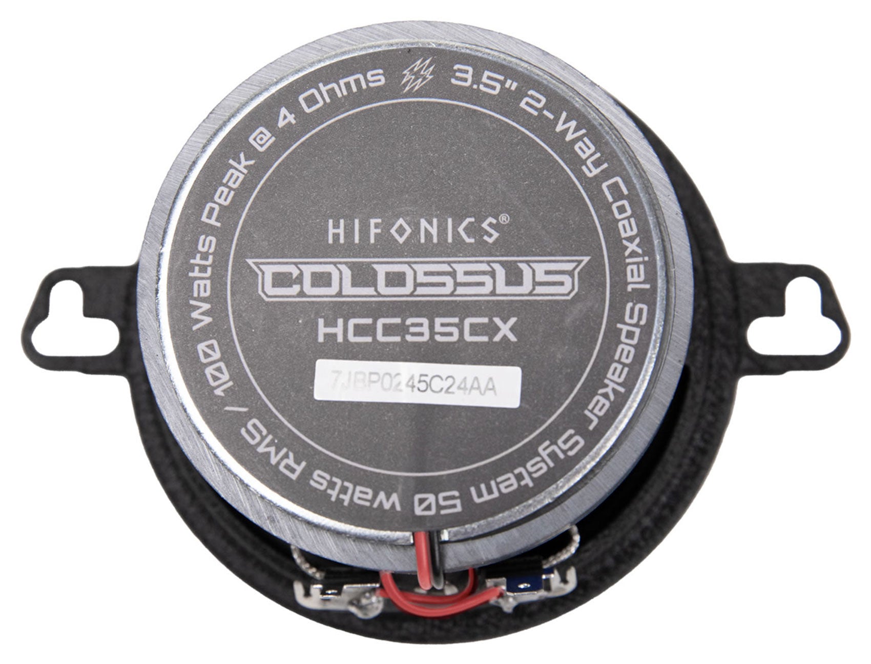 The Hifonics Colossus Classic 3.5-inch 2-way coaxial car speakers deliver crisp, high-quality sound with aluminum dome tweeters for clear highs and durable butyl rubber surrounds for enhanced bass response. Built for long-lasting performance, these speakers are perfect for upgrading your car's audio system.
