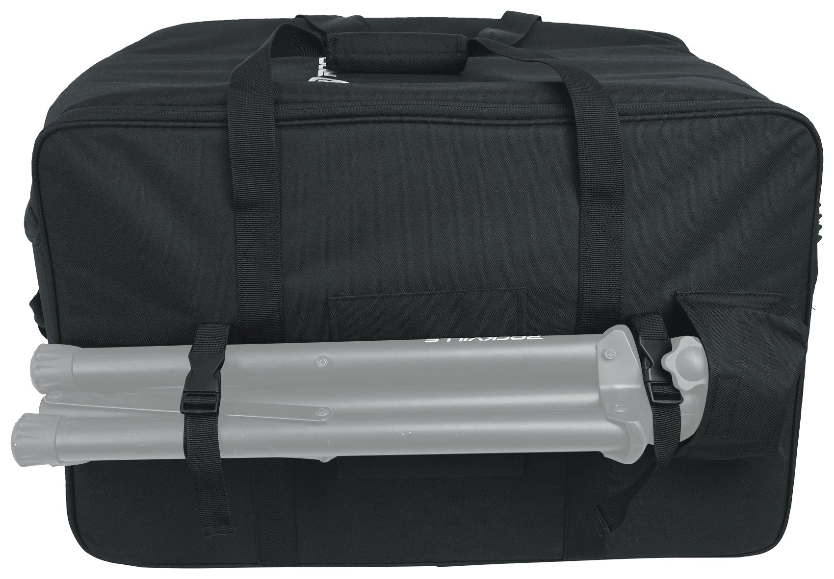 The Rockville SB12 v2 Rolling Speaker bag was designed to fit most popular 12" speaker cabinets. Our speaker bags feature soft foam all around with extra protection on the bottom and top. The bag is soft yet rigid and it will maintain its shape even when empty. We know how important your speakers are so we made sure these speaker bags were built to withstand the rigors of frequent transport. They are water-resistant, rugged and feature dual zippers which allow you to load and unload your speaker with ease.