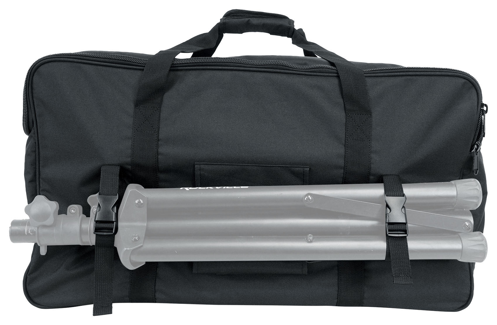 - Side of the bag has a pocket with strap and buckle to hold your stands
