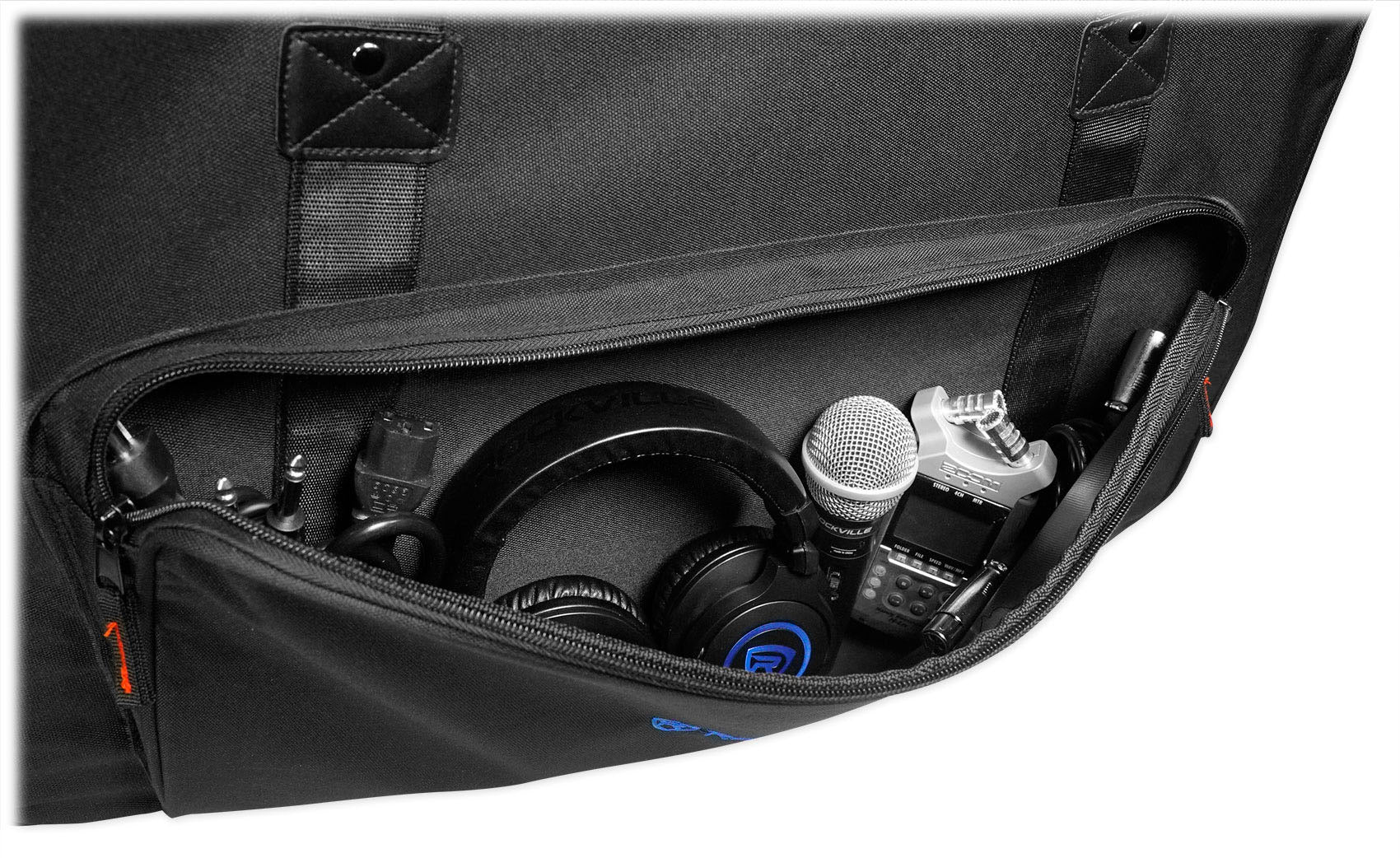 The Rockville SB12M Rolling Speaker bag was designed to fit the most popular Medium size 12” speaker cabinets. Our speaker bags feature structured foam on the bottom of the bag to protect your speakers while in transit to and from your gig. We know how important your speakers are so we made sure these speaker bags were built to withstand the rigors of frequent transport. They are water resistant, rugged and feature dual zippers which allow you to load and unload your speaker with ease. We also added a large accessory pocket to this bag so you have a designated place for your cables or even microphone.