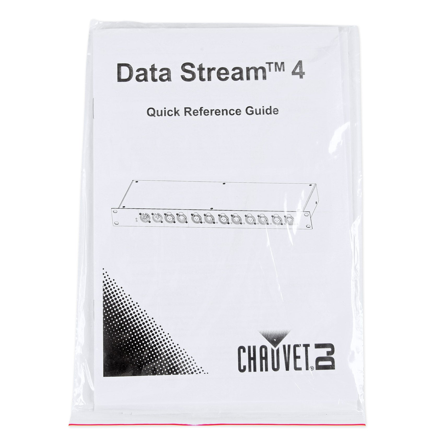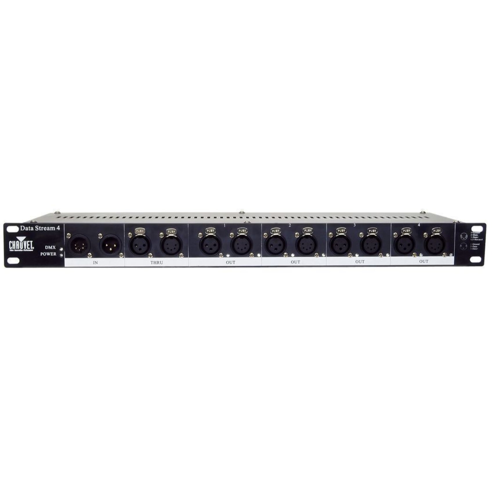The Data Stream™ 4 is a universal DMX-512 optical splitter designed to distribute the incoming DMX signal, in daisy chain configurations, into four separate outputs with an additional "thru" port.