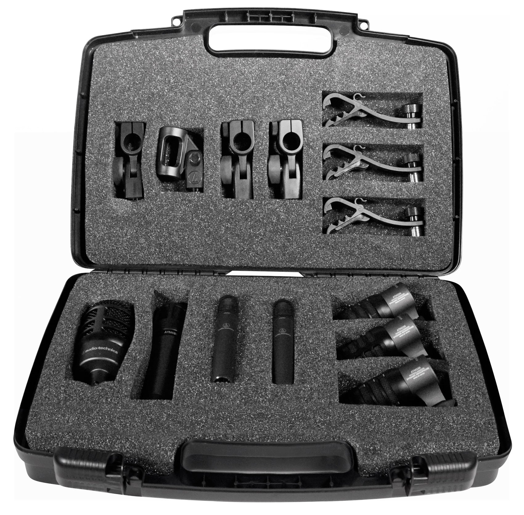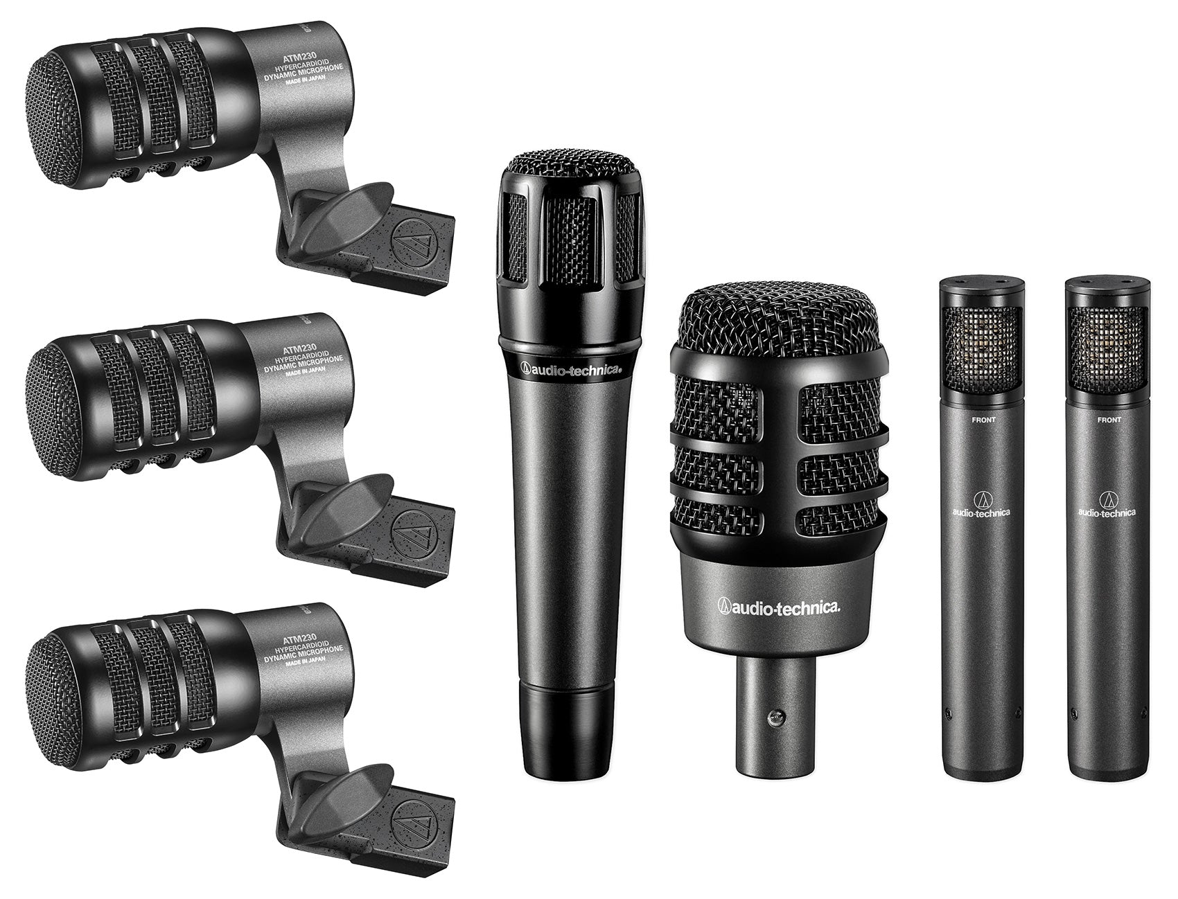 The ATM-DRUM7 Drum Pack includes a core selection of five microphones specifically engineered for kick, snare and tom drum applications, along with two microphones ideal for drum overhead miking. The ATM-DRUM7 pack gives you a complete set of drum microphones for live performance and home recording.