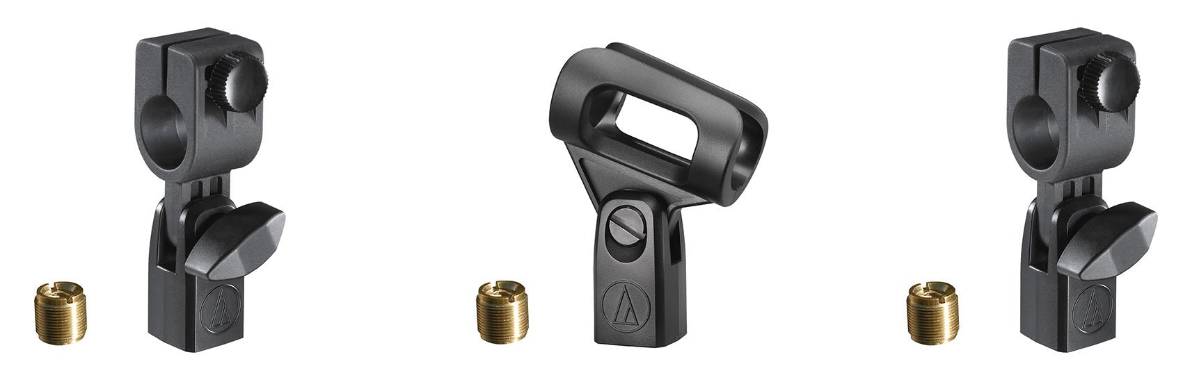 - Three AT8471 isolation stand clamps; AT8470 Quiet-Flex™ stand clamp; four 5/8"-27 to 3/8"-16 threaded adapters; three AT8665 drum mic clamps; hard carrying case