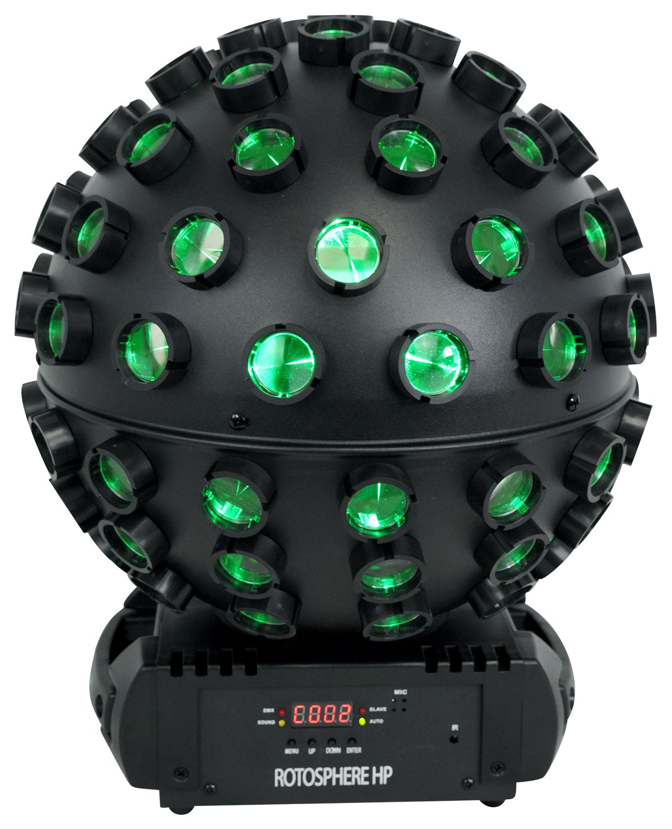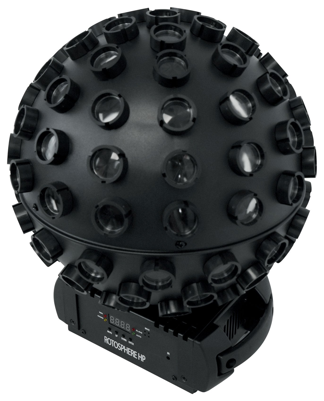 Rotosphere HP is a high-powered, easy to use mirror ball party light. Its innovative grouping of dual quad-color LEDs (RGBW & CMYO) produce new and exciting color combinations while its slow rotation speed is the perfect feature for creating a romantic atmosphere. The digital display lets you set different color and rotation speeds effortlessly. Power up your parties with the Rotsphere HP, an effect light that's made to dazzle.
