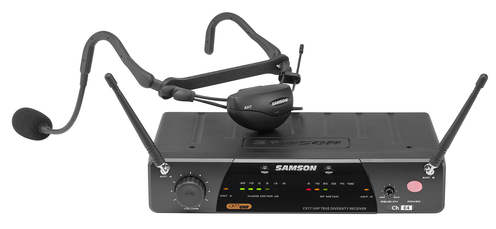 The Samson AirLine 77 AH7 Fitness Headset system is a wireless microphone