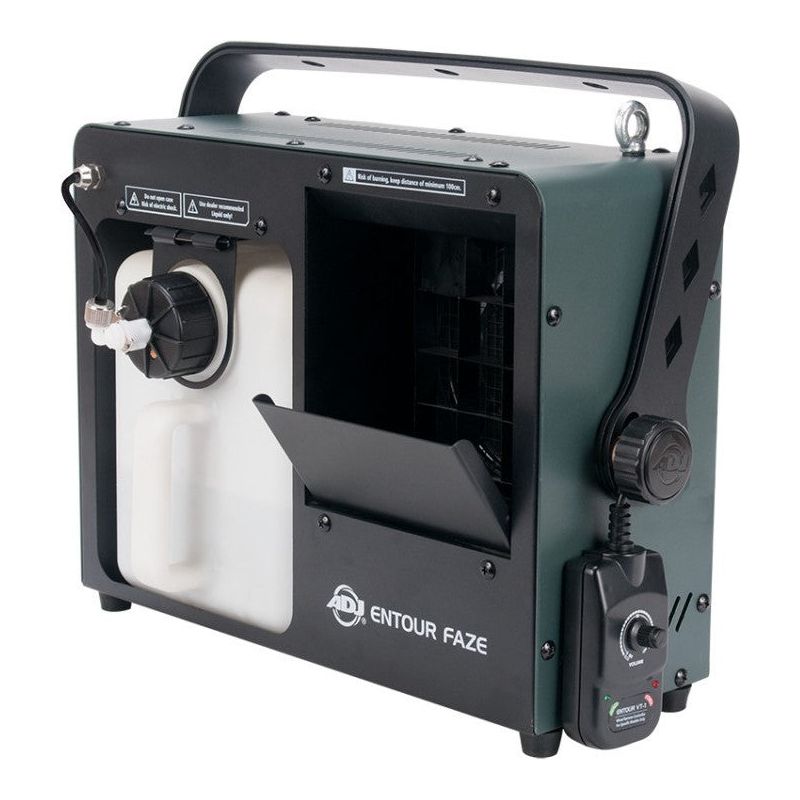 The Entour Faze can be operated by the faze trigger switch on the rear of the machine, the supplied Entour VT-1 wired remote or from a DMX controller. It has a large 3-liter tank that uses standard water based fog fluid.