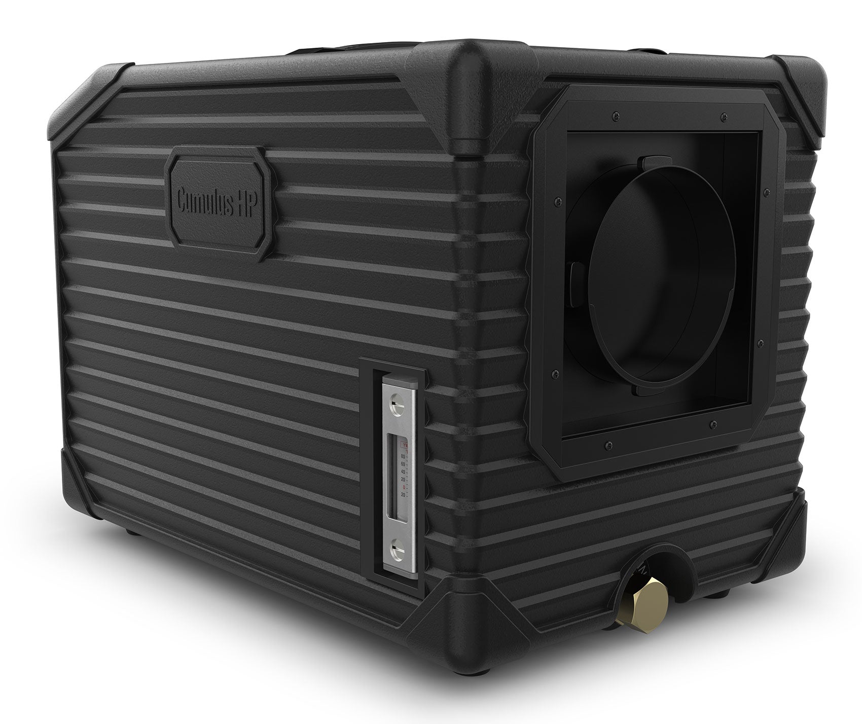 The event industry’s favorite low-lying fog machine is now smaller, lighter, and easier to control than ever. Cumulus HP creates thick clouds that hug the floor creating a stunning special effect, without the need for dry ice. The onboard ultrasonic atomizer converts distiller water into a thin mist. The unit’s fast heat up time allows for quick operation and fog on demand. Its rugged plastic housing acts as a case making transportation a breeze. Cumulus HP can be controlled with the built-in digital display, DMX, or included wireless remote.Features: