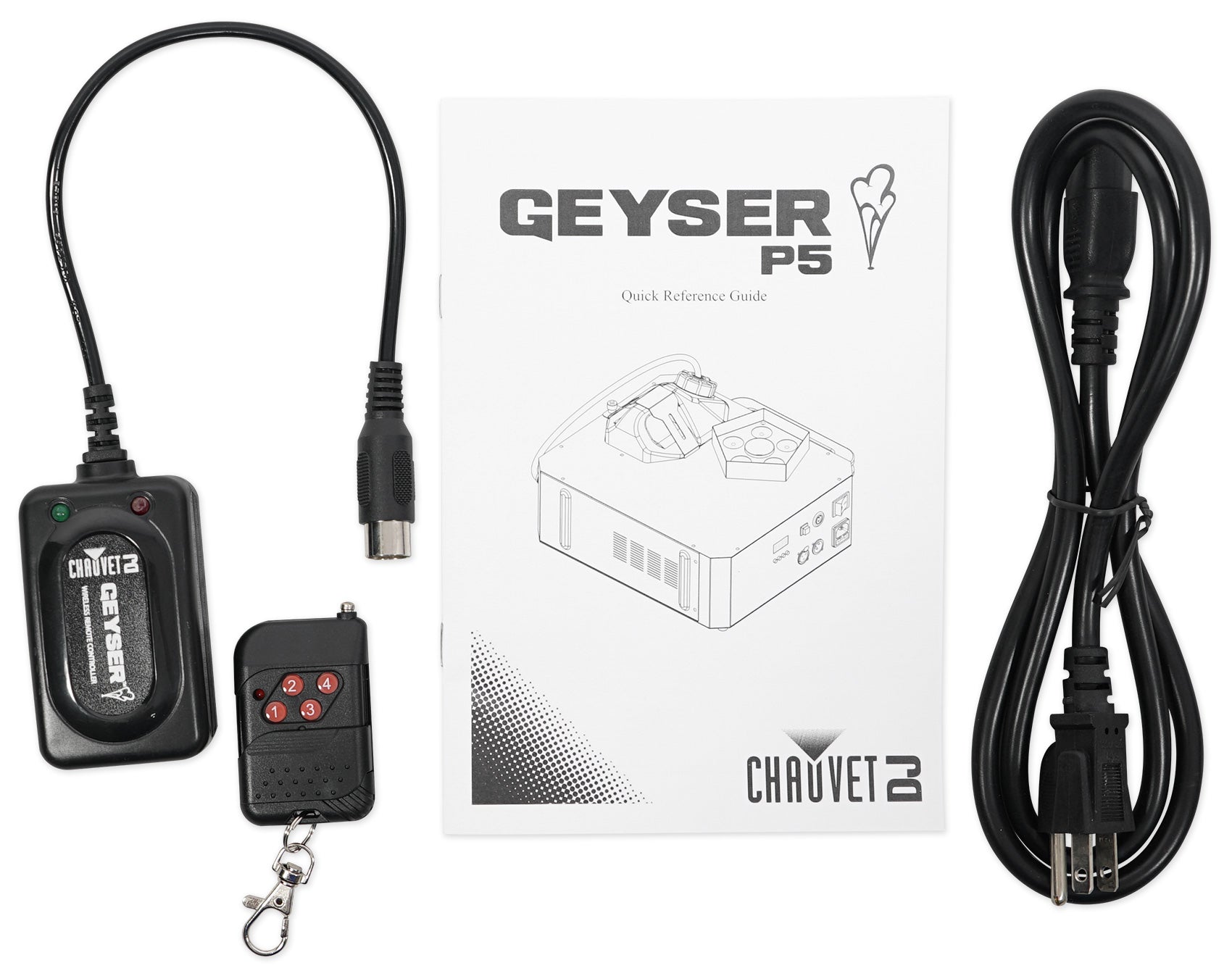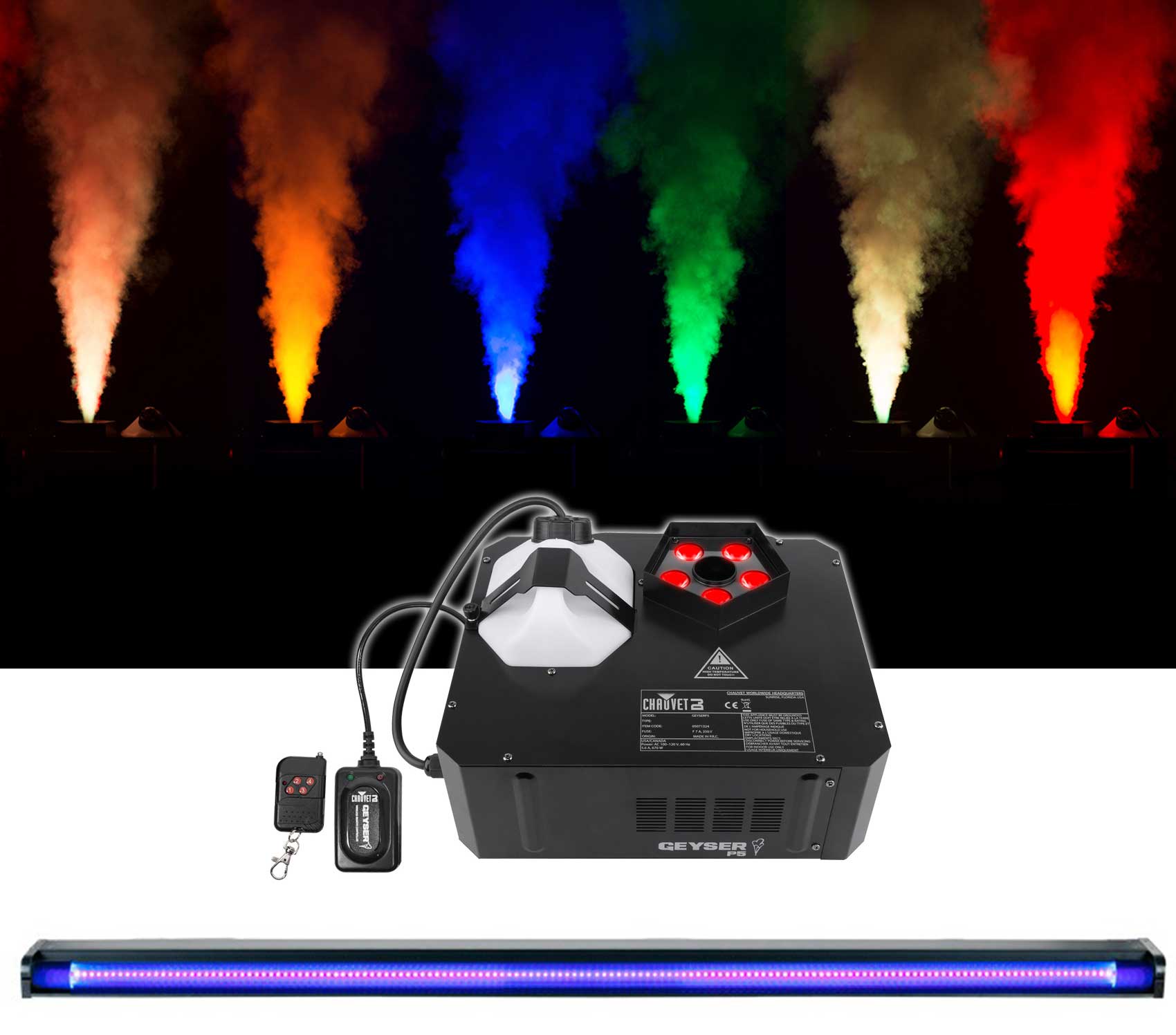 - Chauvet DJ GEYSER P5 DMX Fog Machine RGBA + UV LED Effects with Wireless Remote