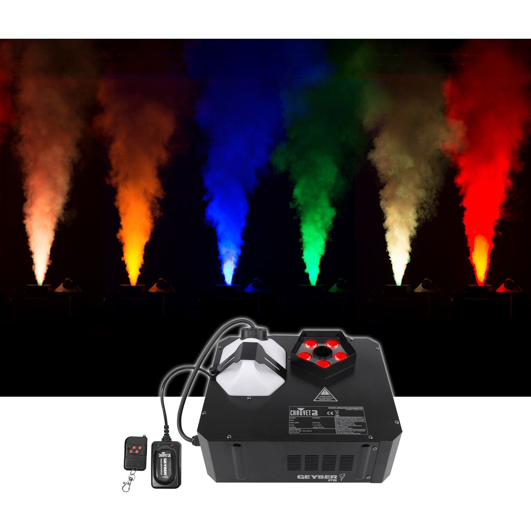 - Chauvet DJ GEYSER P5 DMX Fog Machine RGBA + UV LED Effects with Wireless Remote
