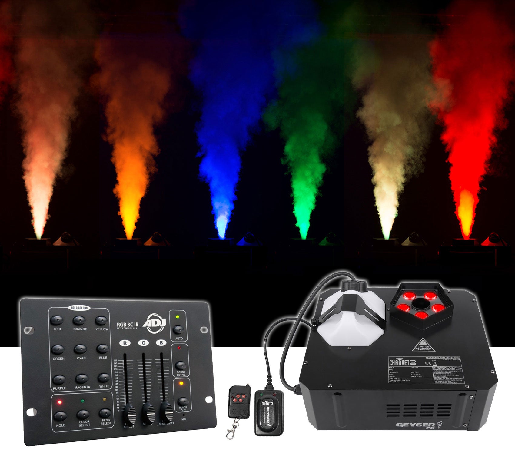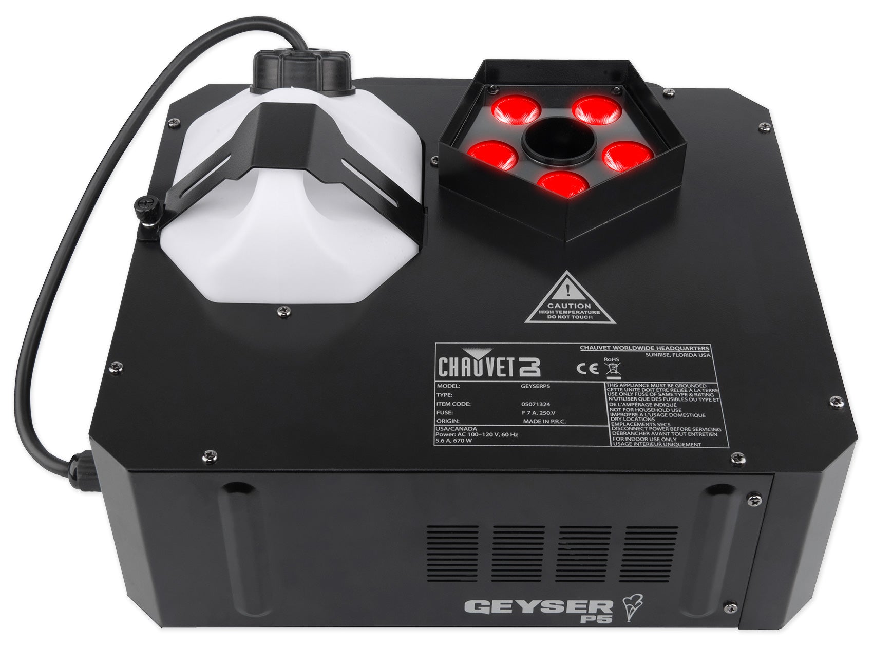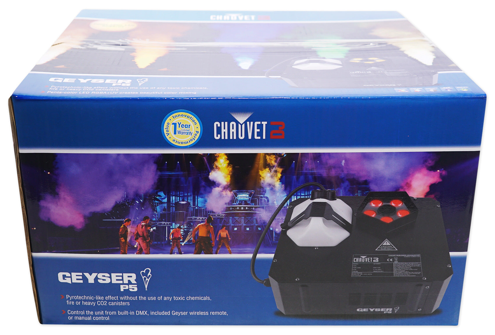 - Chauvet DJ GEYSER P5 DMX Fog Machine RGBA + UV LED Effects with Wireless Remote