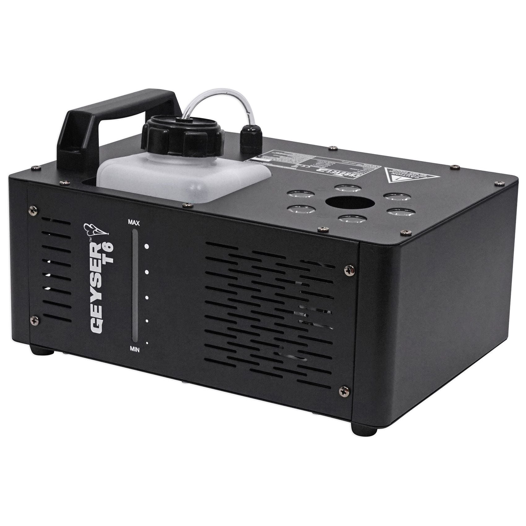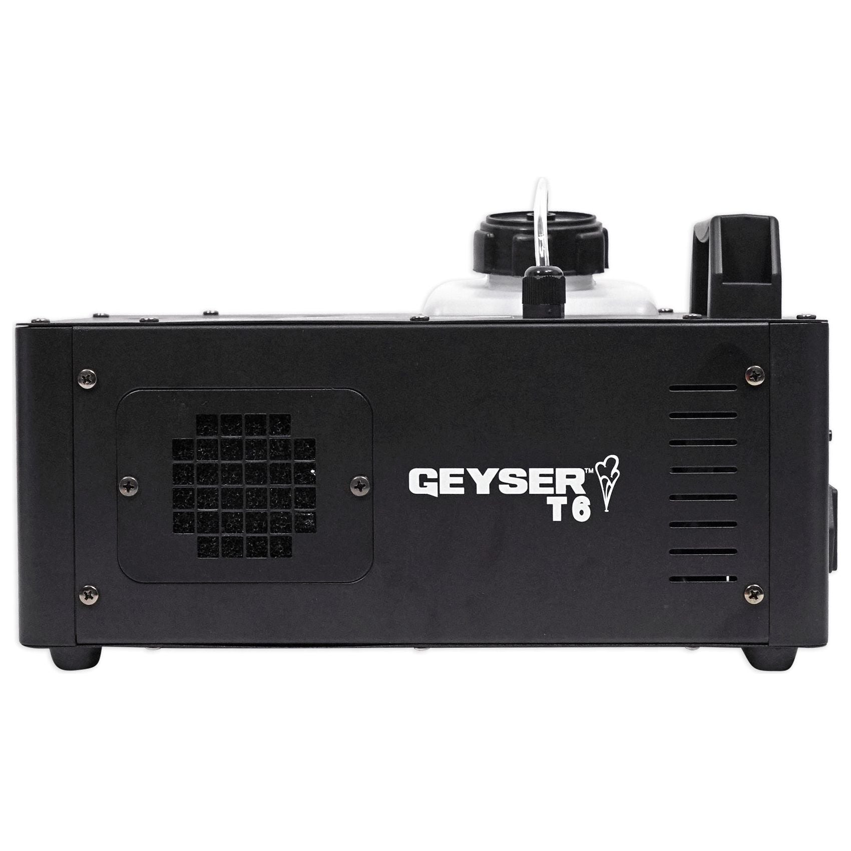 Geyser T6 brings a burst of lighting energy to your events with a pyrotechnic-like effect. Geyser T6 illuminates bursts of water-based fog with 6 tri-color (RGB) LEDs. Its advanced fluid sensor with automatic shut off protects the pump from overheating.Compact and lightweight, Geyser T6 is perfect for mobile applications.