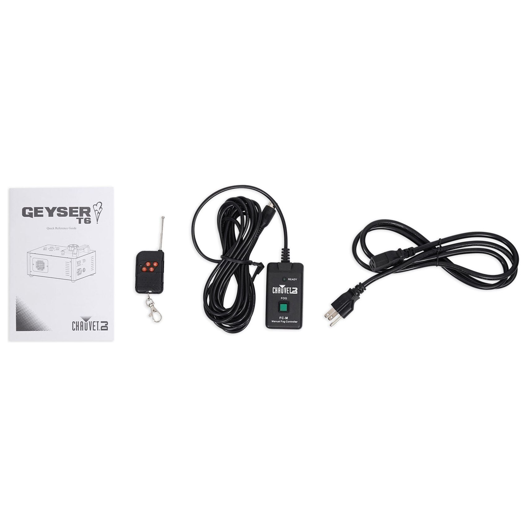 • Chauvet DJ Geyser T6 Fog Machine Fogger, LED RGB Pyrotechnic Light Effect+Remote