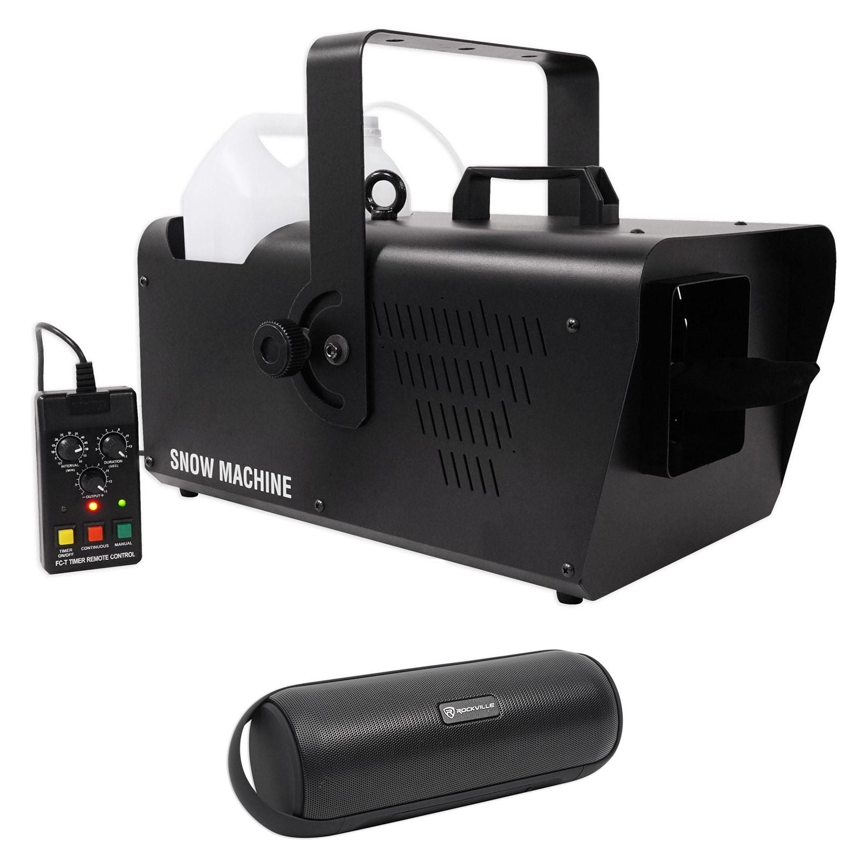 Snow Machine is a high output snow machine with user-friendly volume adjustment included via the included wired timer remote, built-in DMX and digital display. Snow Machine also features a convenient Hi/Low blower switch for coverage of near and far distances and its non-toxic water based snow fluid (sold separately) is safe for all environments.