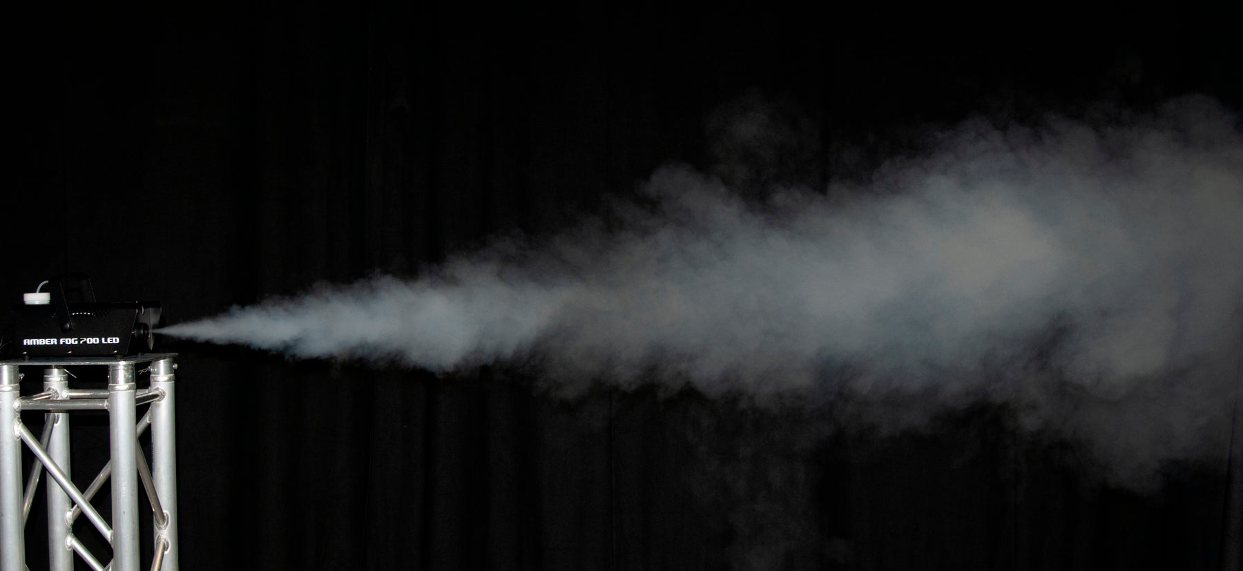 The LEDs flame effect can be switched On/Off on the back of the machine. Fog production can be activated on the supplied remote control or the On/Off switch on the rear. The Amber Fog 700 LED comes with a hanging bracket so it can be hung on truss, and it has rubber feet built-in so it may be operated from the ground.