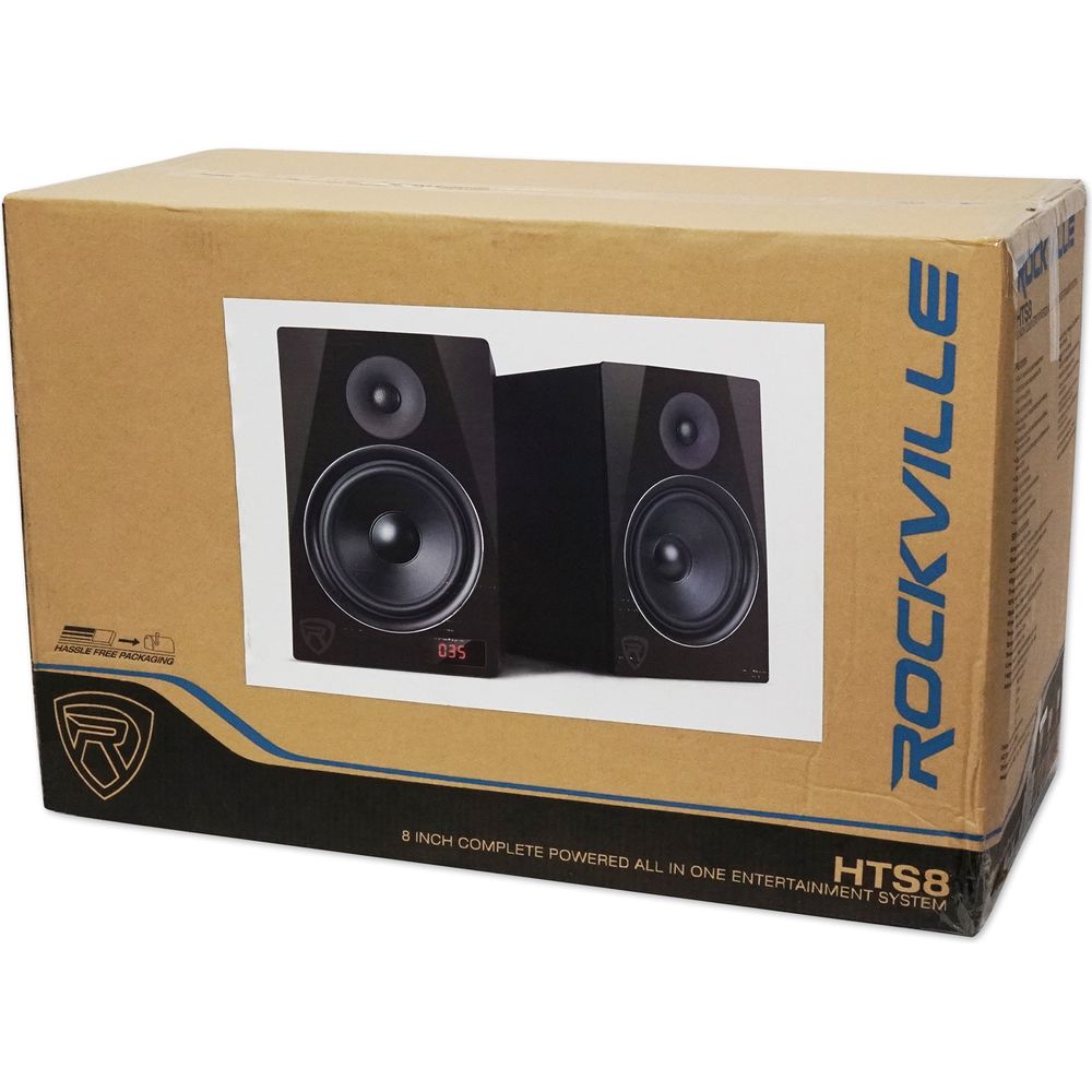 Rockville HTS8B 8" 1000W Powered Home Theater Speakers w/Bluetooth/FM/USB+Stands