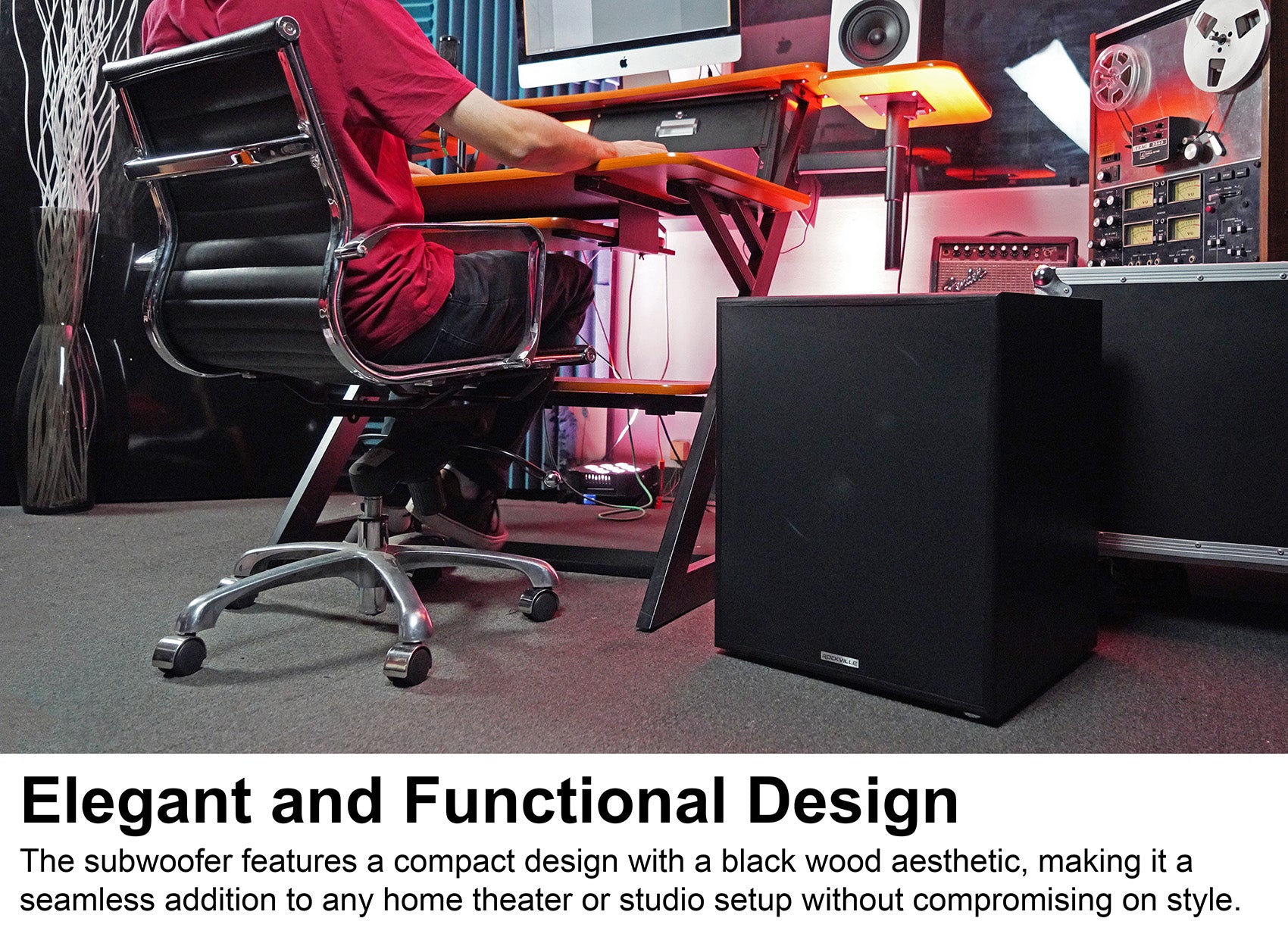 The enclosure is made of high quality MDF which delivers superb sound. We use a highly efficient class “D” amplifier that is engineered to be perfectly matched with the woofer and enclosure.