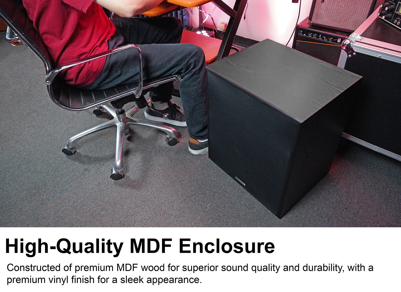 - Enclosure is made of top quality MDF wood. (MDF wood sounds better and lasts longer than particle board)