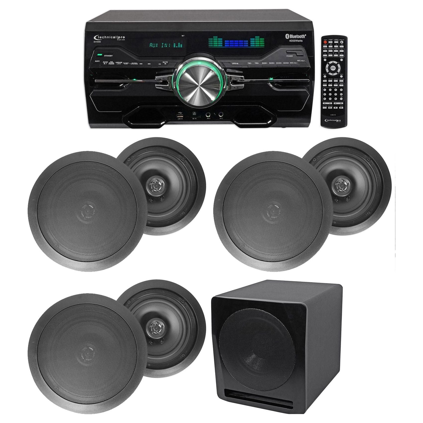 4000w Home Theater DVD Receiver w/Bluetooth/USB+5) Black 8" Ceiling Speakers+Sub
