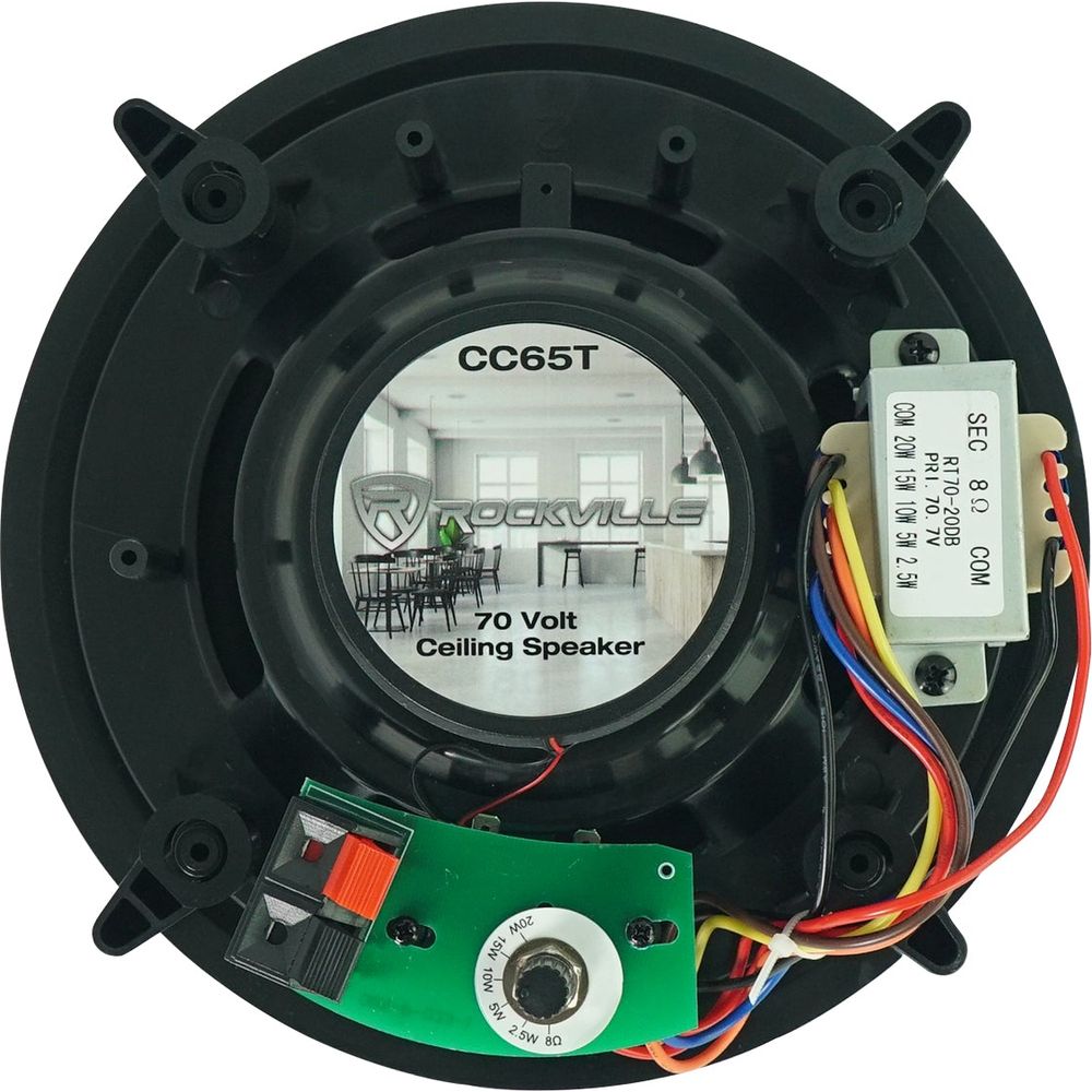 • Pair of Rockville CC65T Black 6.5” Commercial 70v In-Ceiling Speakers for Restaurant/Bar/Cafe