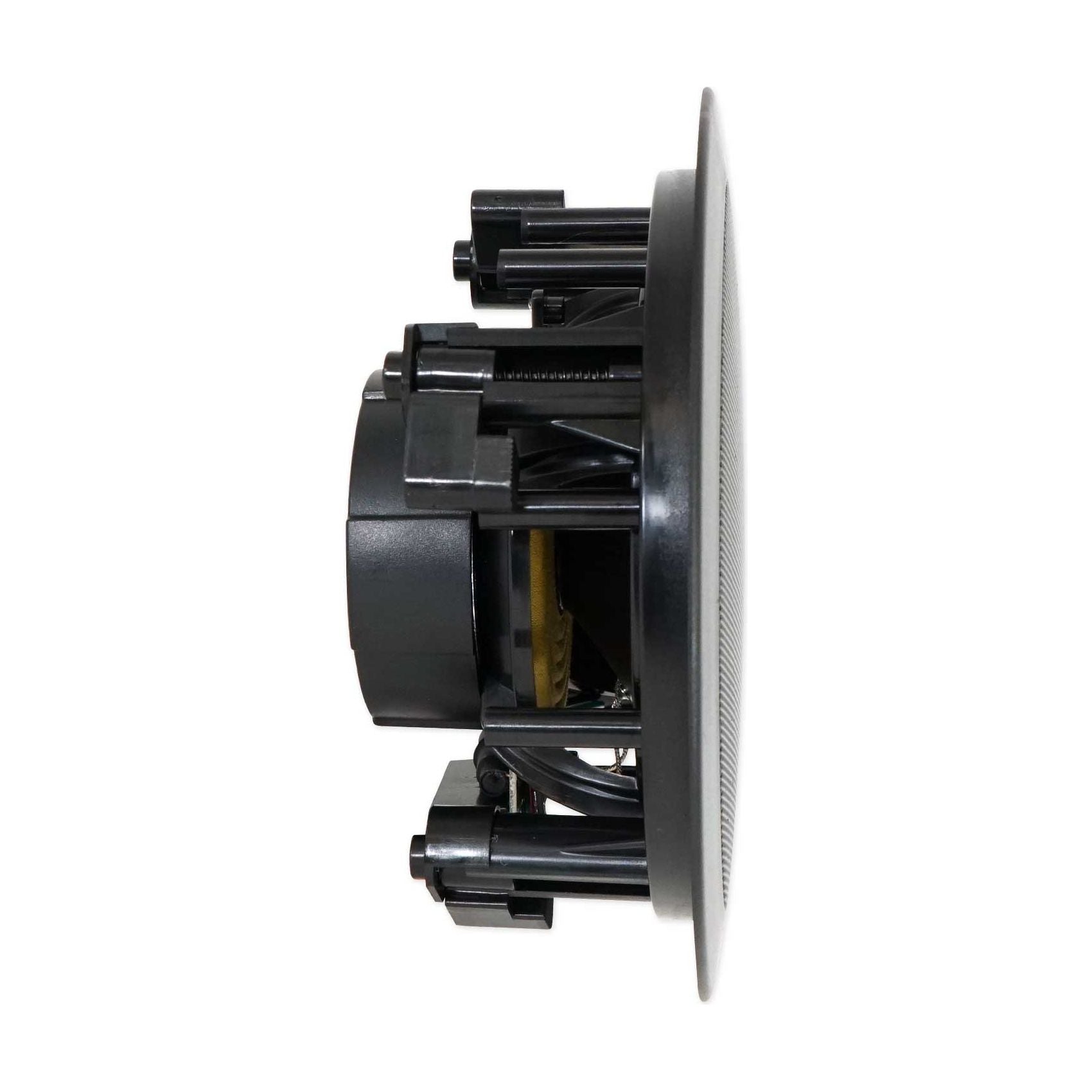These in-ceiling speakers feature a 5.25” polypropylene cone for clear, rich mids and deep bass. Rubber surrounds eliminate unwanted distortion so all your music sounds loud and clear. Our mylar dome tweeter provides clean, crisp highs. Each pair puts out 120 watts RMS and 300 watts of peak power! This is more than enough power to fill large rooms. The included sheer grill enables flush installation. Our high quality spring loaded push terminals supply a perfect signal from your amp or receiver.