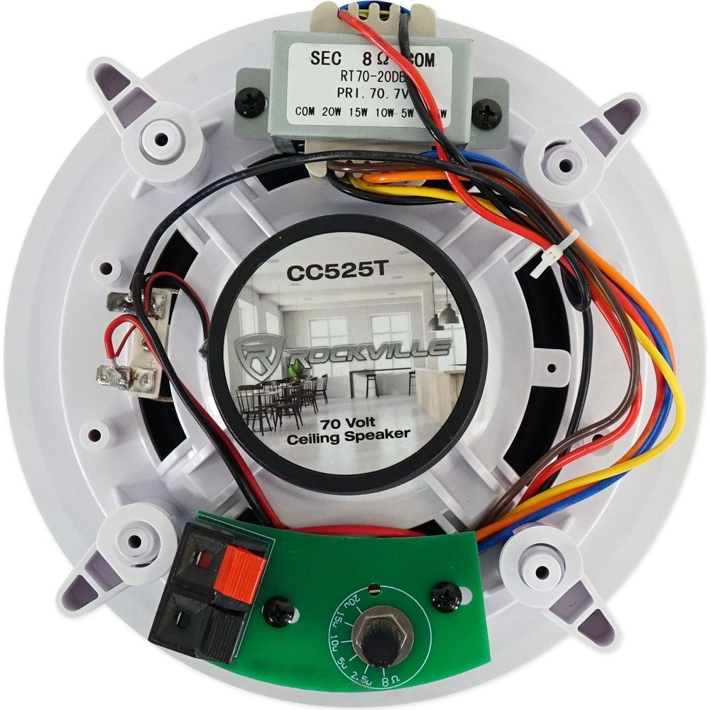- Pair of Rockville CC525T White 5.25” Commercial 70v In-Ceiling Speakers for Restaurant/Bar/Cafe