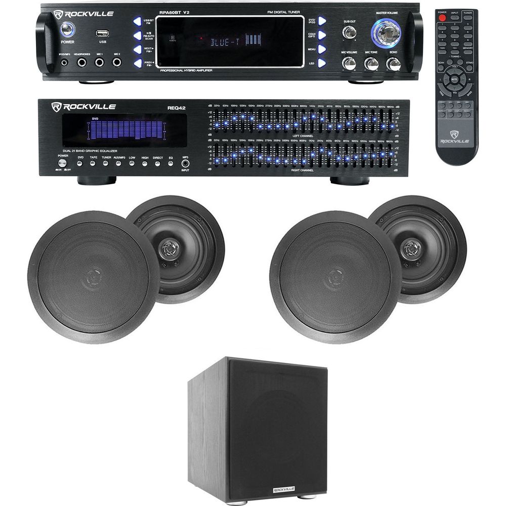 Home Theater Bluetooth Receiver+EQ+(4) Black Ceiling Speakers+8" Subwoofer