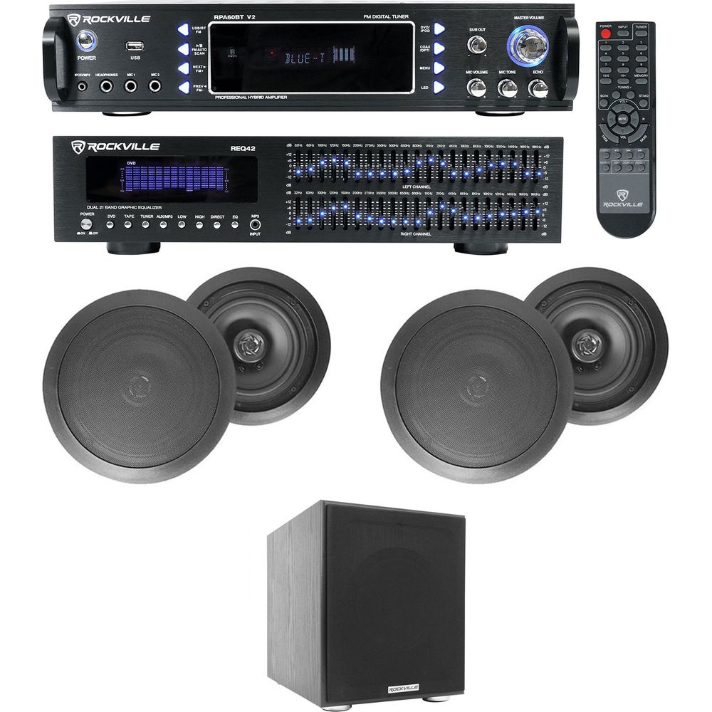 Home Theater Bluetooth Receiver+EQ+ (4) Black Ceiling Speakers+8" Subwoofer