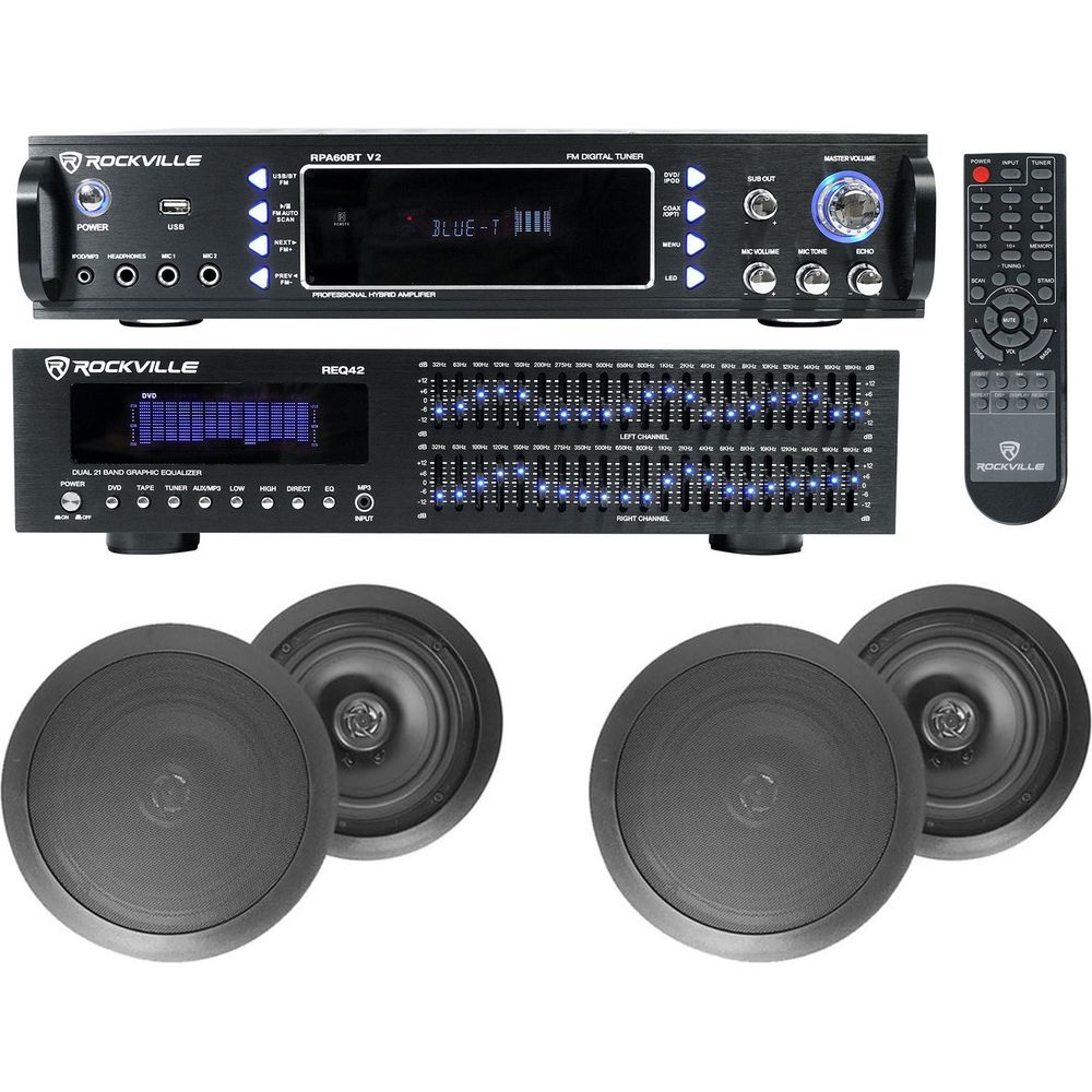 Home Theater Bluetooth Receiver+Equalizer EQ+(4) 8" Black Ceiling Speakers