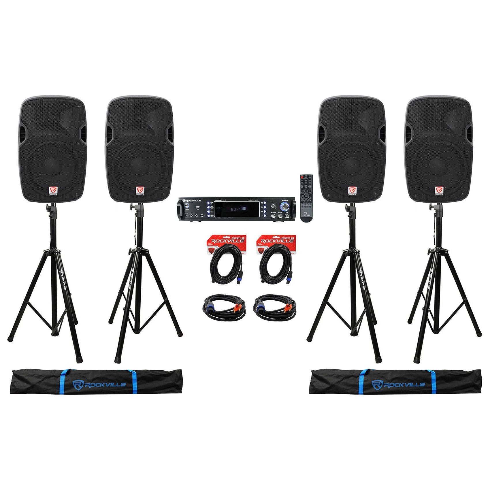 - (4) Rockville SPGN128 12" Passive 1200W DJ PA Speaker ABS Lightweight Cabinet 8 Ohm