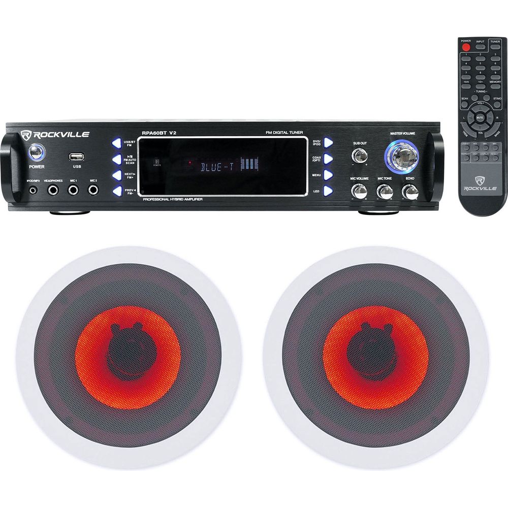 Rockville 1000w Home Theater Bluetooth Receiver+(2) In-Ceiling 6.5" LED Speakers