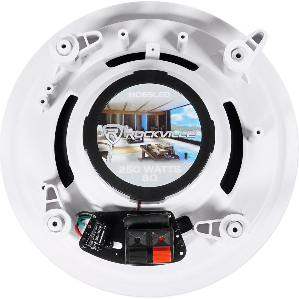 • Pair of Rockville HC65-LED 6.5” White 500 Watt 2-Way In-Ceiling Home Theater Speakers with LED