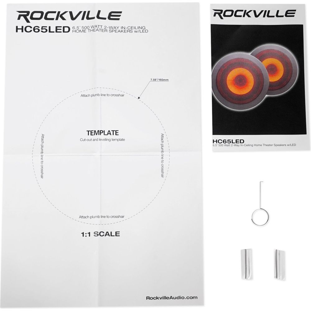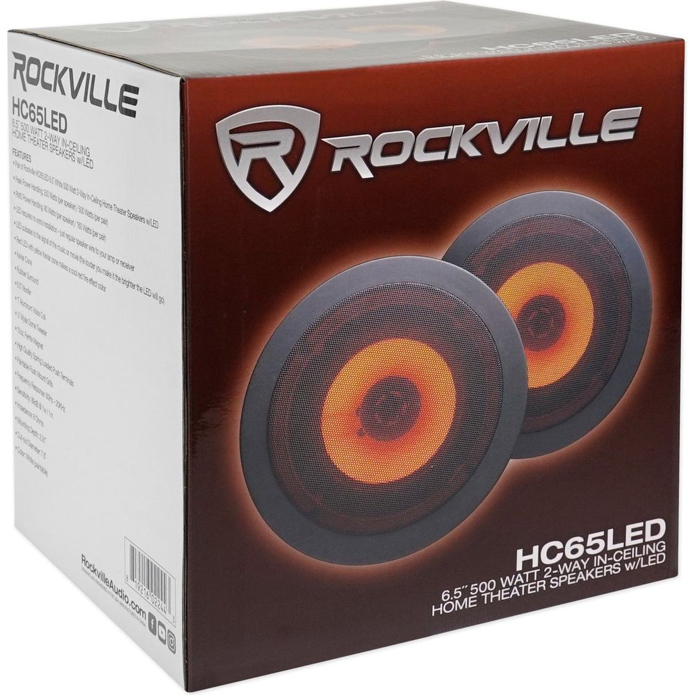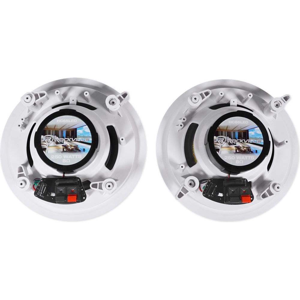 - Pair of Rockville HC65-LED 6.5” White 500 Watt 2-Way In-Ceiling Home Theater Speakers with LED