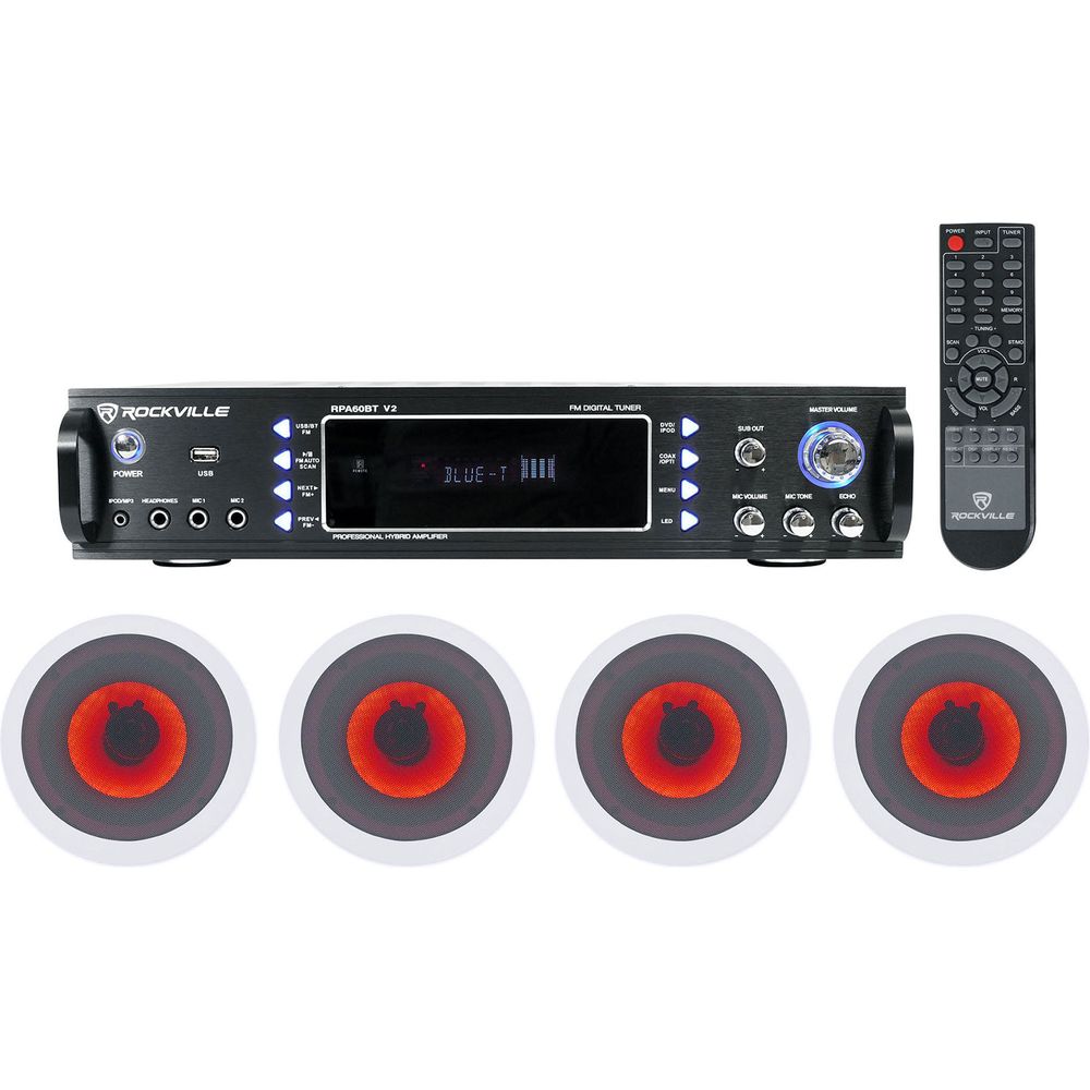 Rockville 1000w Home Theater Bluetooth Receiver+(4) In-Ceiling 6.5" LED Speakers