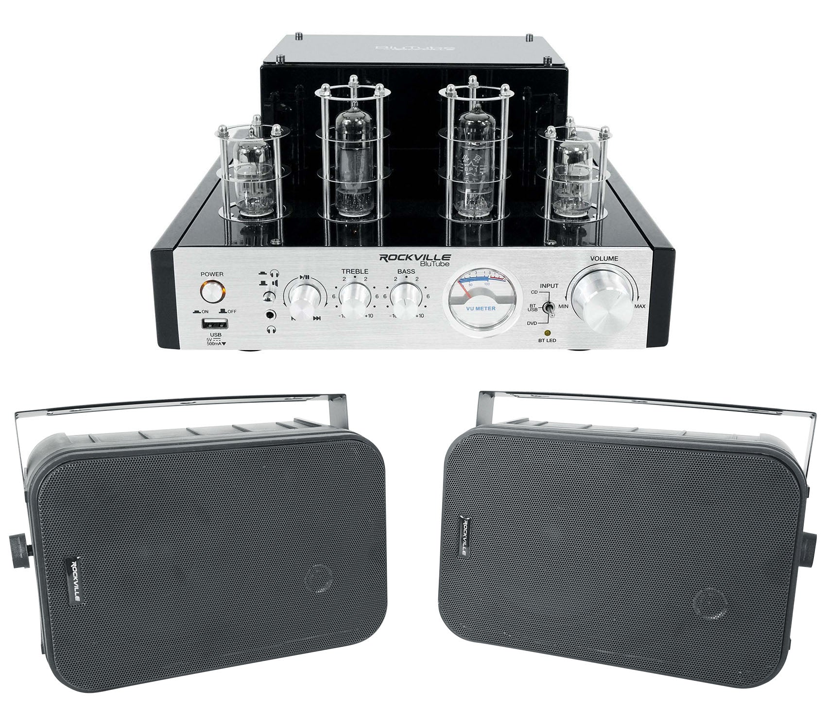 Rockville BluTube Tube Amplifier/Home Theater Bluetooth Receiver+6.5" Black Speakers