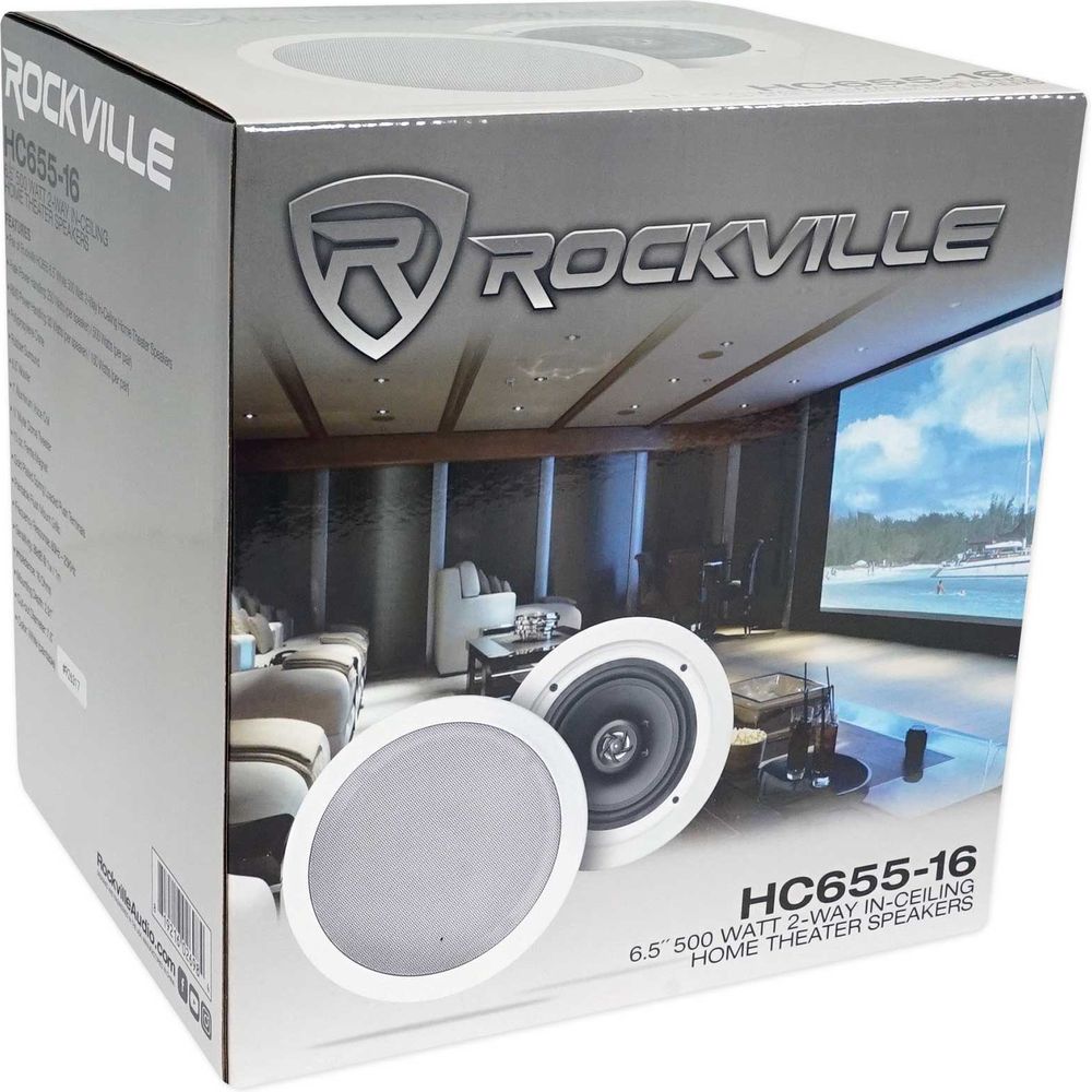 • Pair of Rockville HC655-16 6.5” White 500 Watt 2-Way In-Ceiling Home Theater Speakers
