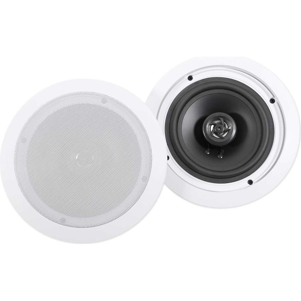 These in-ceiling speakers feature a 6.5” polypropylene cone for clear, rich mids and deep bass. Rubber surrounds eliminate unwanted distortion so all your music sounds loud and clear. Our mylar dome tweeter provides clean, crisp highs. Each pair puts out 160 watts RMS and 500 watts of peak power! This is more than enough power to fill large rooms. The included sheer grill enables flush installation and can be painted to match any décor. Our high quality spring loaded push terminals supply a perfect signal from your amp or receiver. Because these speakers are 16 ohm you can install 8 of them to a stereo receiver in parallel!