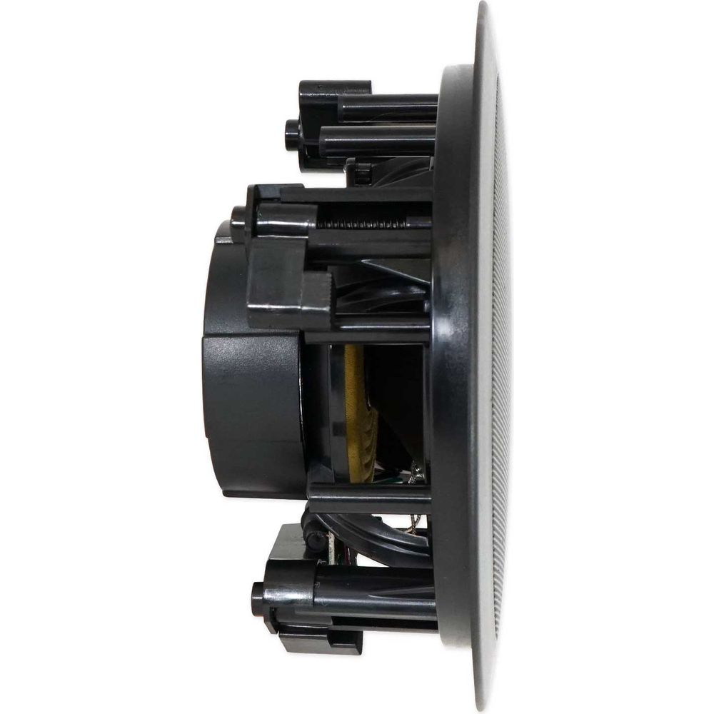 These in-ceiling speakers feature a 5.25” polypropylene cone for clear, rich mids and deep bass. Rubber surrounds eliminate unwanted distortion so all your music sounds loud and clear. Our mylar dome tweeter provides clean, crisp highs. Each pair puts out 120 watts RMS and 300 watts of peak power! This is more than enough power to fill large rooms. The included sheer grill enables flush installation. Our high quality spring loaded push terminals supply a perfect signal from your amp or receiver.