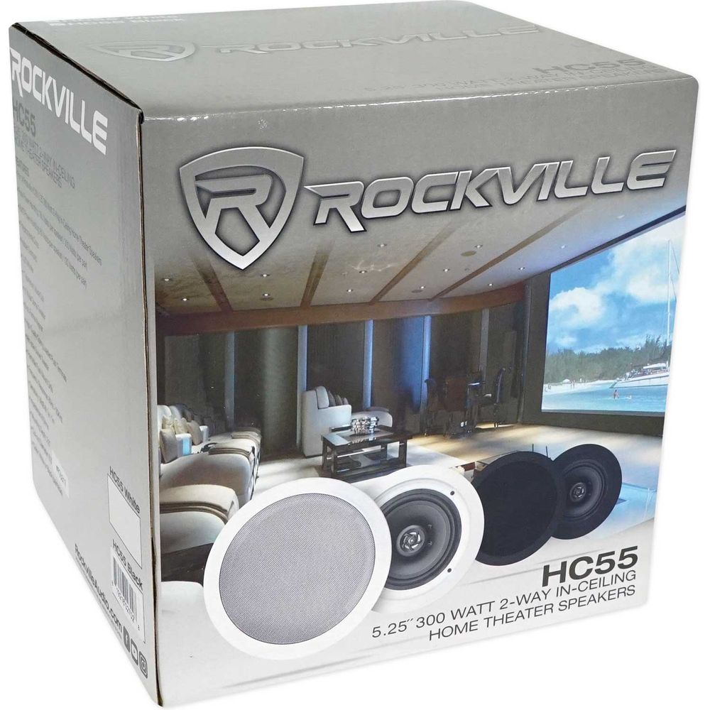 • Pair of Rockville HC55 5.25” Black 300 Watt 2-Way In-Ceiling Home Theater Speakers