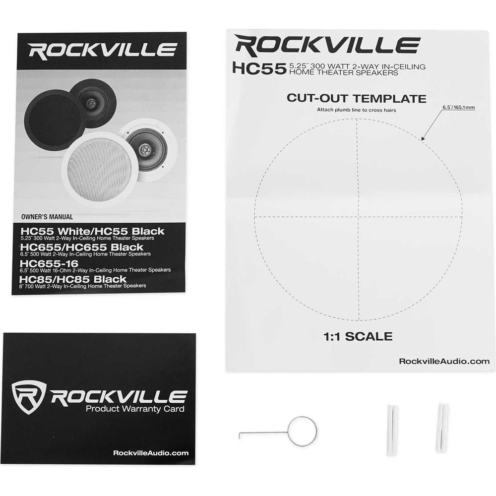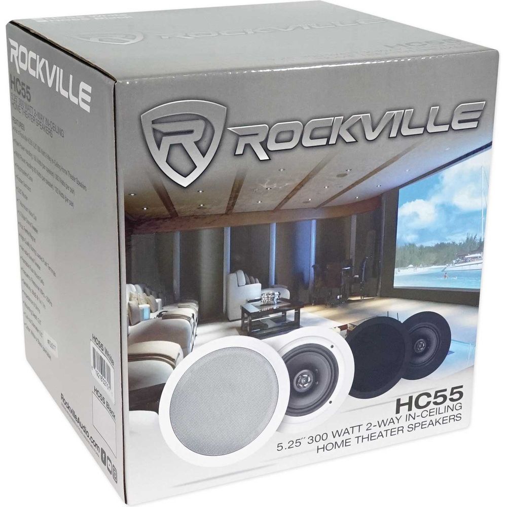 - Pair of Rockville HC55 5.25” White 300 Watt 2-Way In-Ceiling Home Theater Speakers