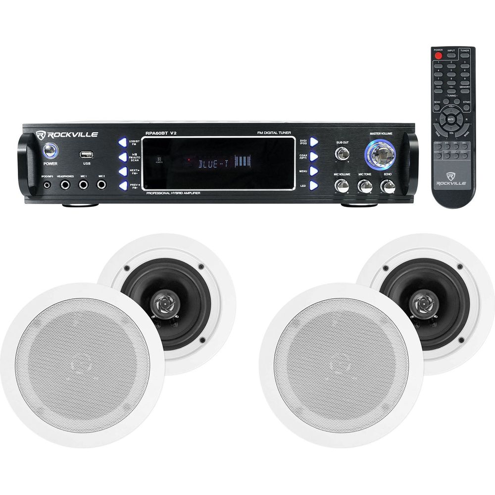 Rockville Home Theater Bluetooth Receiver+(4) 5.25" White In-Ceiling Speakers