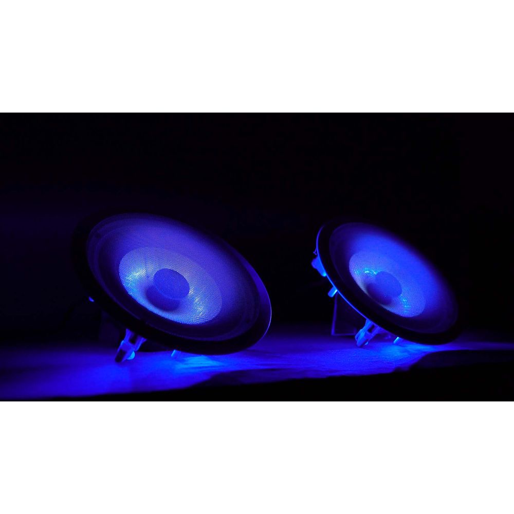 - Blue LED with yellow Kevlar cone makes a cool blue effect color