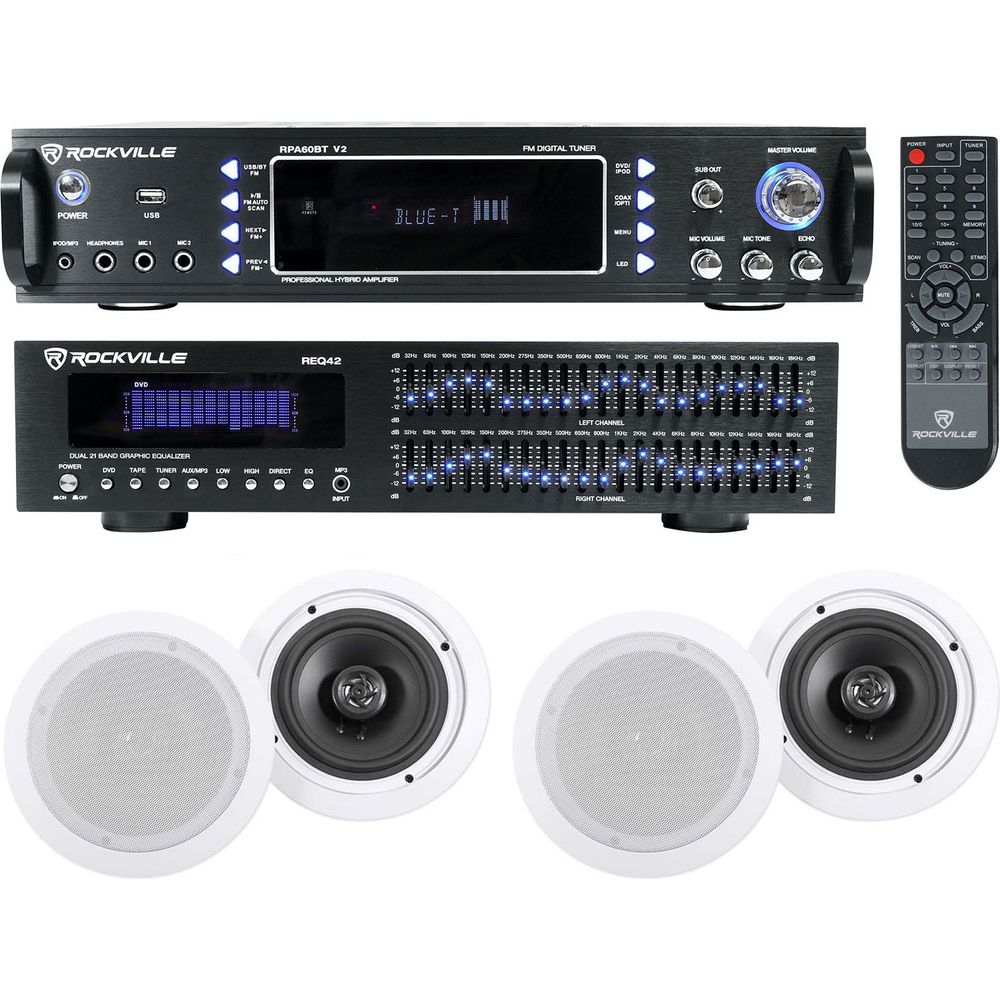 Rockville Home Theater Bluetooth Receiver+Equalizer EQ+(4) 6.5" Ceiling Speakers