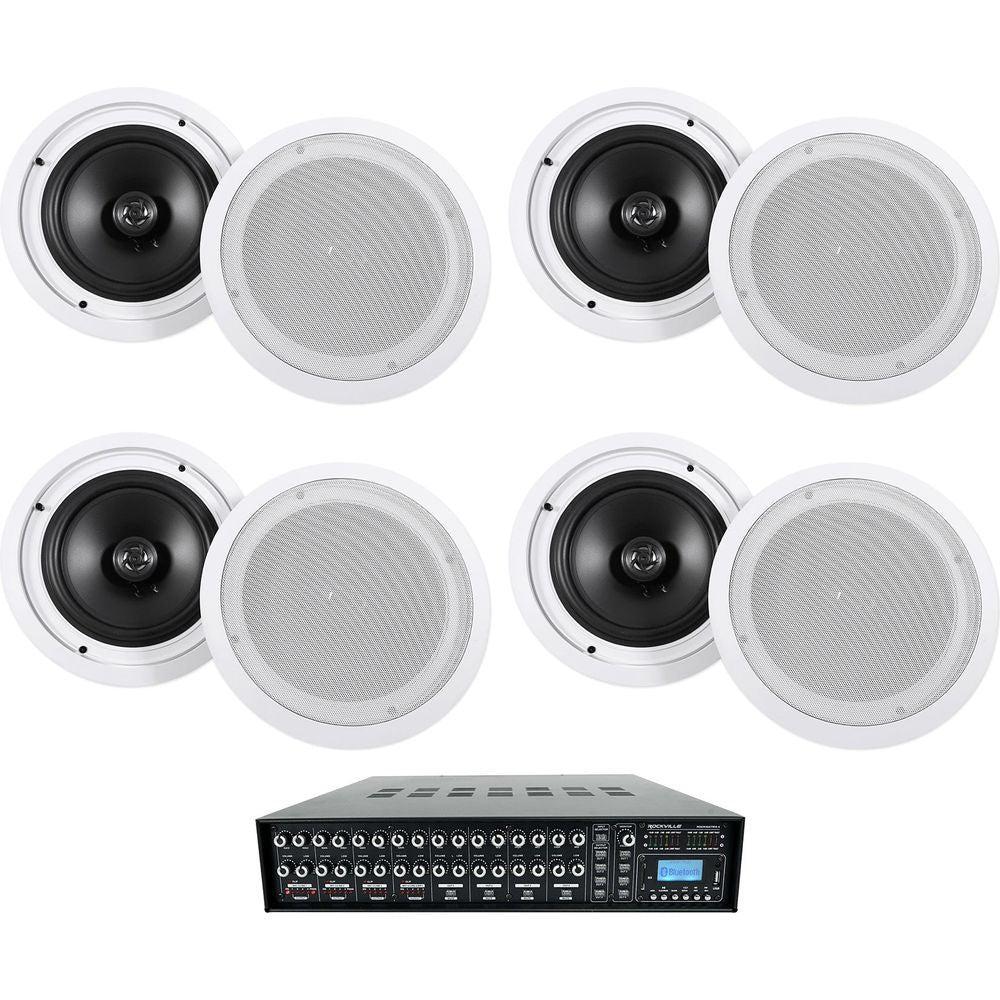 Rockville ROCK MATRIX 4-Zone Home Audio System w/(8) 8" White Ceiling Speakers