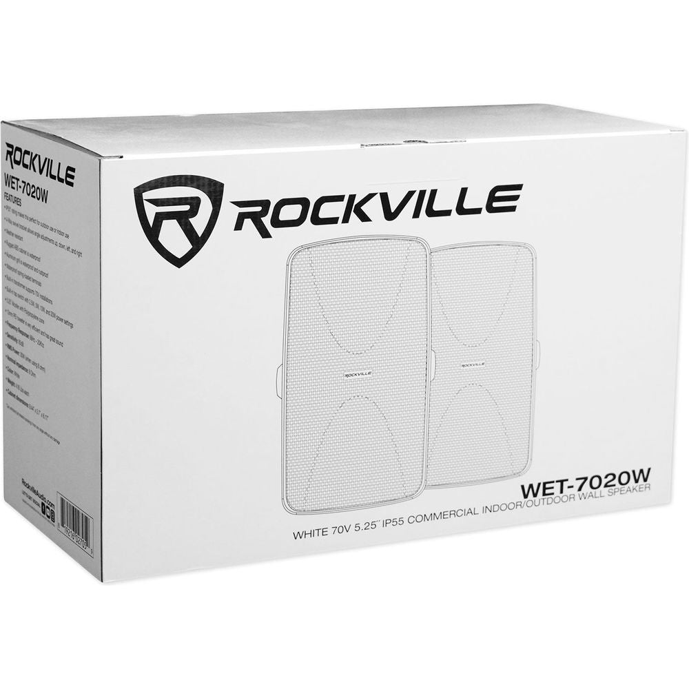 • Pair Rockville WET-7020W 5.25" 70V IPX55 Commercial Indoor/Outdoor Wall Speakers