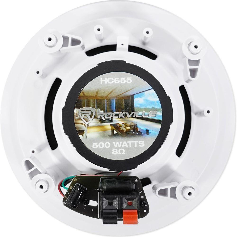 • Pair of Rockville HC655 6.5" White 500 Watt 2-Way In-Ceiling Home Theater Speakers
