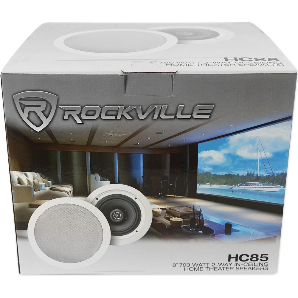- Pair of Rockville HC85 8" White 700 Watt 2-Way In-Ceiling Home Theater Speakers