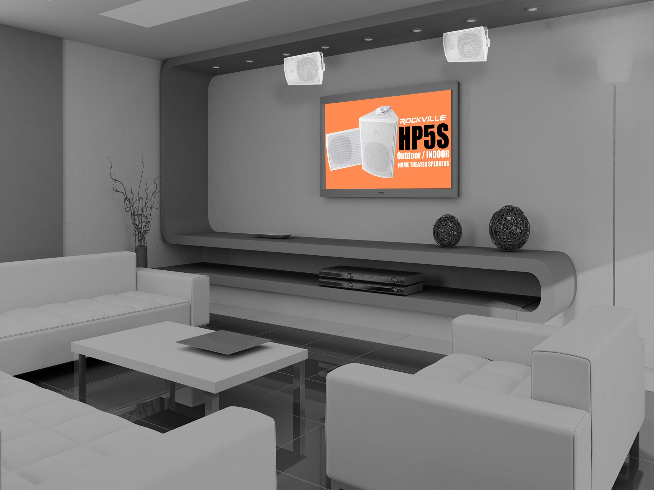 - Pair of Rockville HP5S-8 5.25” White 420 Watt Outdoor / Indoor Home Theater Speakers with Swivel Bracket