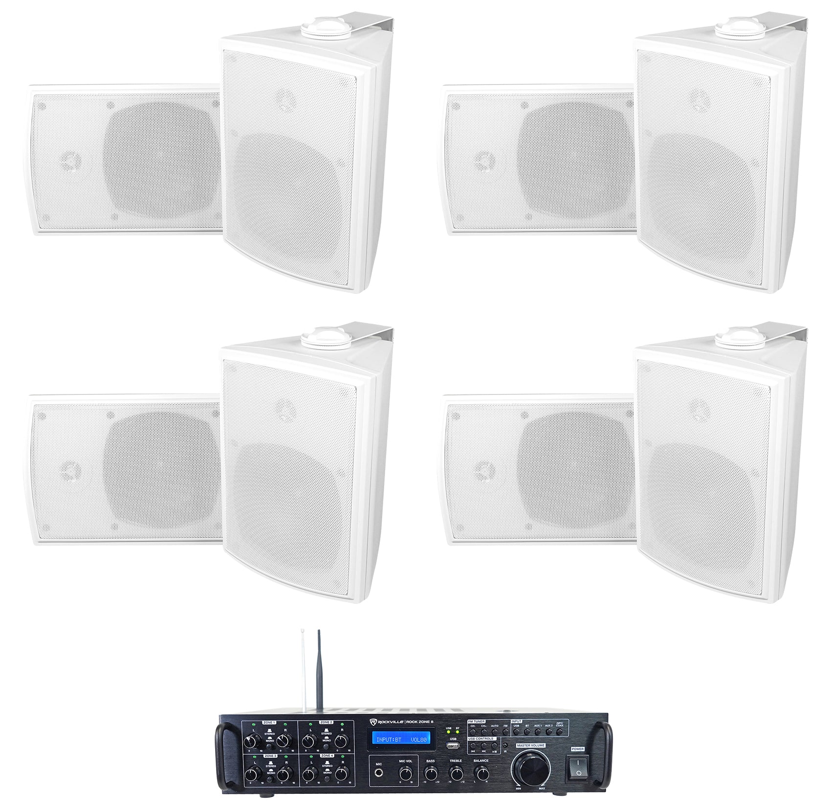 Rockville Rock Zone 8 Ch. Multi Room Home Receiver+8) White 5.25" Wall Speakers